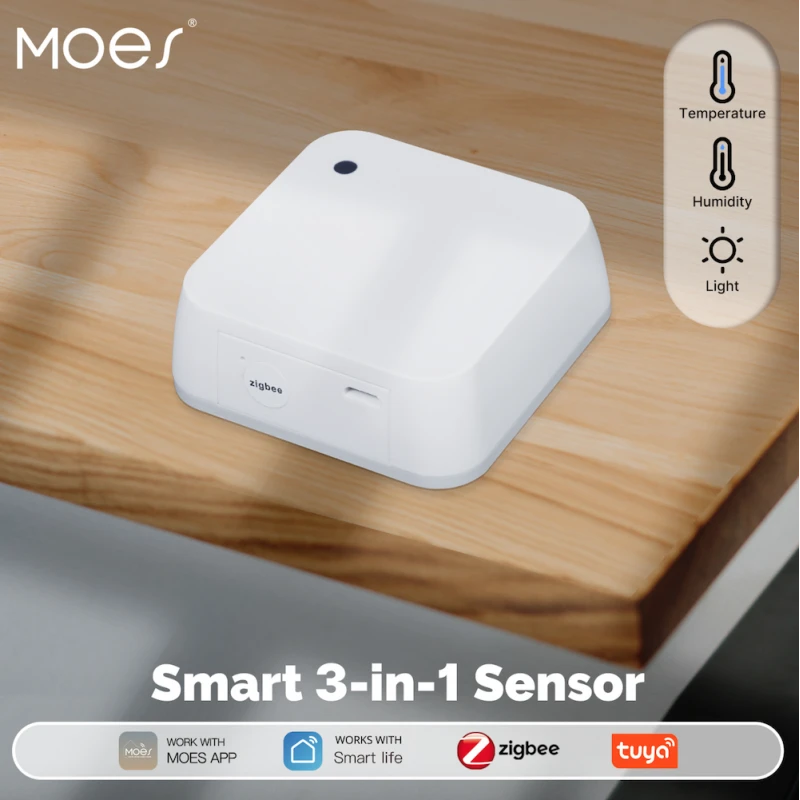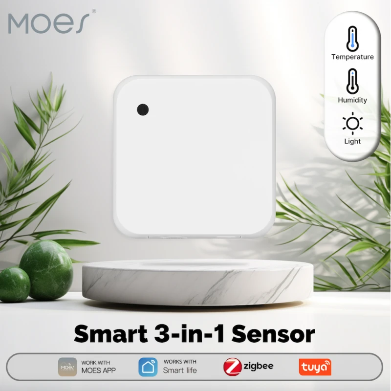 The MOES ZSS-THL02 sensor combines three key environmental measurements—temperature, humidity, and ambient light—into one compact device. Using the ZigBee protocol, it integrates effortlessly with the Tuya Smart and Smart Life ecosystems, making it ideal for automating home devices and optimizing comfort while saving energy.