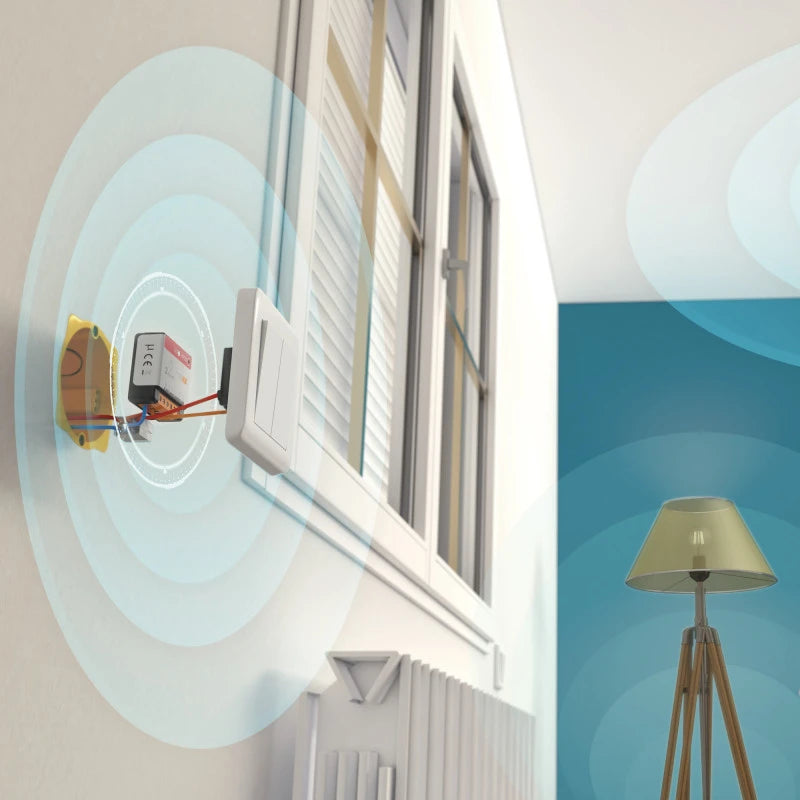 - Installs behind existing wall switches, at ceiling lights, or in electrical panels