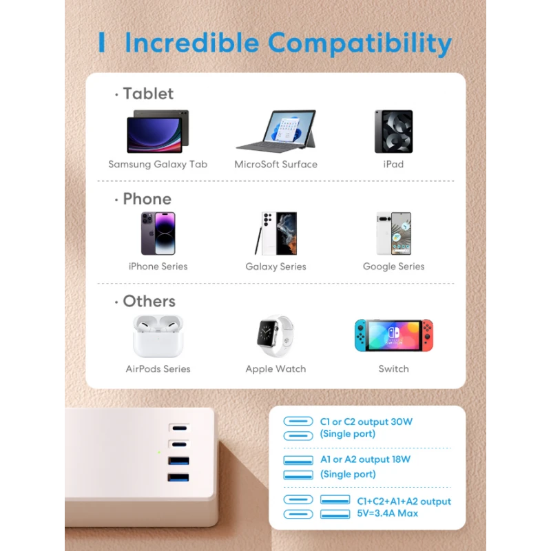 - 2x USB-C PD 30W (supports PD3.0, PPS, QC3.0/2.0)