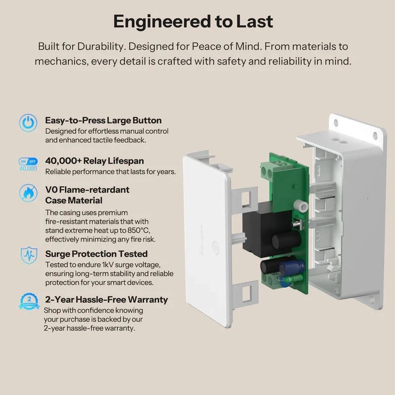 The SONOFF Basic Gen5 is a WiFi smart switch built for Matter-enabled smart homes. With broad compatibility, local control, and flexible automation features, it’s ideal for remotely managing your lights or appliances with speed and reliability.