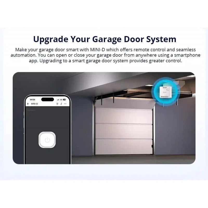 Το SONOFF MINI-D είναι μια συμπαγής και έξυπνη μονάδα ξηρής επαφής με δυνατότητα Matter WiFi , σχεδιασμένη για απρόσκοπτο αυτοματισμό και τηλεχειρισμό μιας ευρείας γκάμας ηλεκτρικού εξοπλισμού — από πύλες και θυροτηλέφωνα έως λέβητες και κουδούνια. Ιδανικό τόσο για οικιακούς όσο και για επαγγελματικούς χώρους, λειτουργεί ακόμη και σε περιορισμένους χώρους χάρη στον εξαιρετικά συμπαγή σχεδιασμό του.