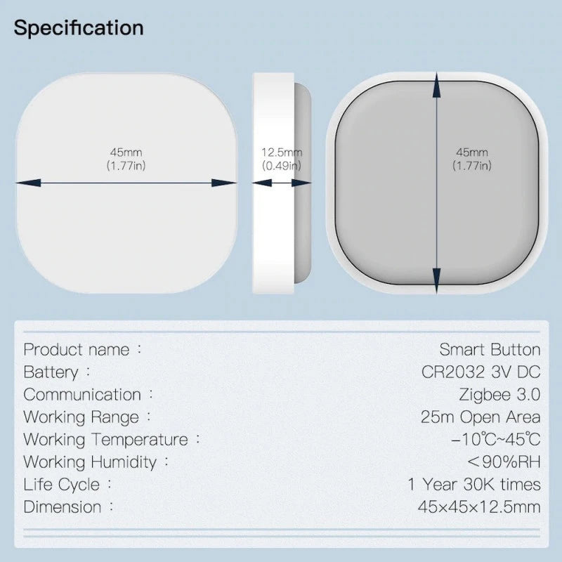The Tuya ZigBee IP55 Smart Button is a compact and versatile device that lets you trigger multiple smart scenes and control your Tuya ZigBee devices remotely. With its minimalist, portable design and IP55 waterproof protection, it’s perfect for both indoor and outdoor use—whether placed on a wall, desk, or carried in your pocket.