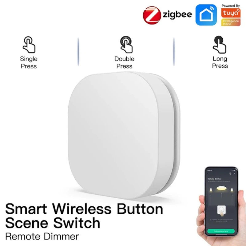 This smart button supports single press, double press, and long press actions, which can be customized in the Smart Life app to control lights, create scenes like "home" or "away" mode, or act as a remote dimmer for Tuya ZigBee bulbs. It offers flexibility and convenience without requiring any wiring.