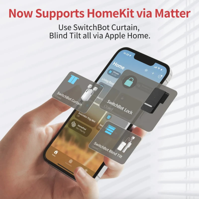 - Devices: SwitchBot Lock, Curtain, Blind Tilt, Pan/Tilt Cam