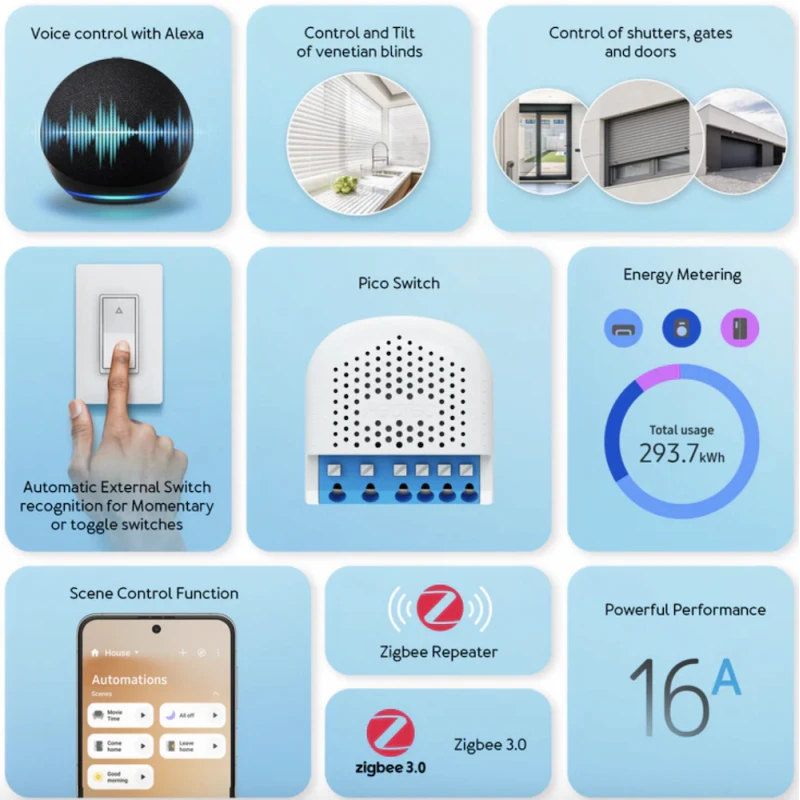 Transform your home into a smart living space with the Aeotec Pico Shutter, a Zigbee 3.0 micromodule designed to automate your roller shutters, blinds, and motorized gates. With seamless integration into SmartThings and Matter-compatible ecosystems, this compact module offers precise control, advanced automation, and easy installation.