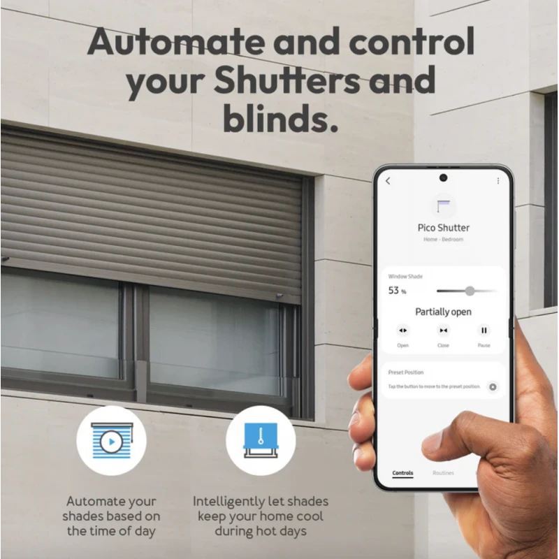 - Program shutters and blinds based on your daily habits