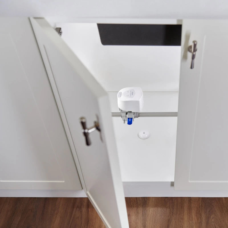 - Automatically shut off water when a leak is detected in the kitchen or bathroom.
