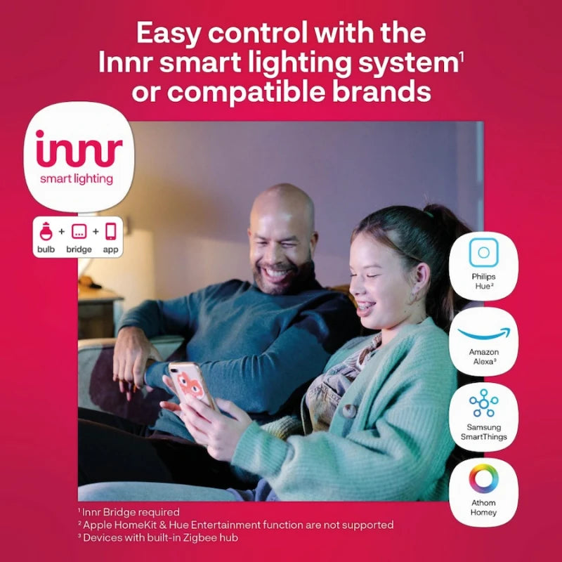 Add vivid, customizable lighting to any space with the Innr 4-meter smart LED strip. Offering up to 16 million color options and seamless integration with Philips Hue and other Zigbee-compatible platforms, this flexible LED strip is perfect for creating decorative lighting accents in your home.