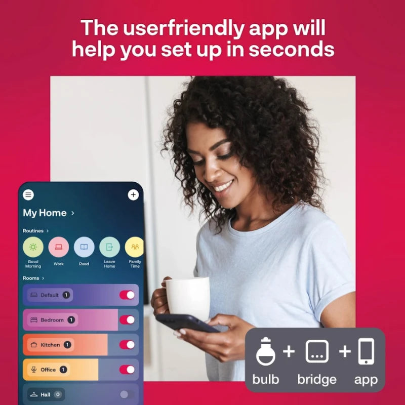 - Create smart scenes and automations for mood lighting, routines, or presence simulation