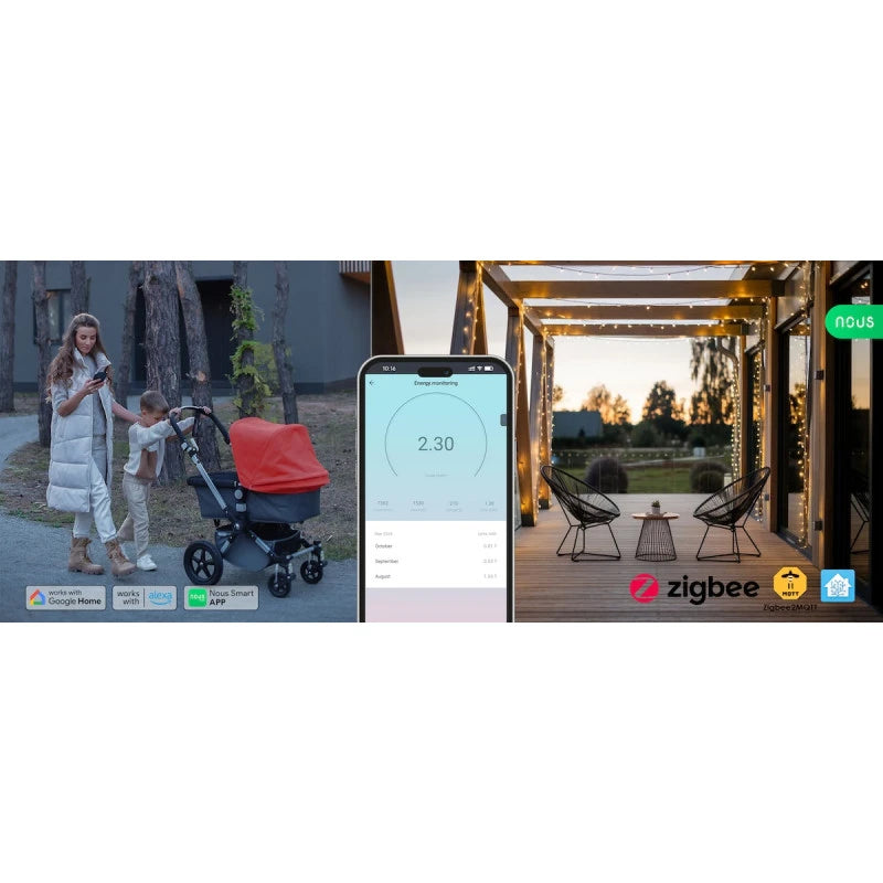 The NOUS A6Z-2 outdoor Zigbee smart sockets offer reliable, remote control and real-time energy monitoring for your outdoor appliances. Designed for both manual and automatic control via smartphone or tablet, they’re compatible with Tuya, Zigbee2MQTT, Home Assistant, and Jeedom platforms. A Zigbee hub is required for operation.