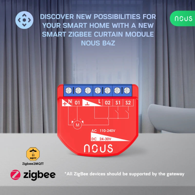 Nous - Zigbee roller shutter module 100-240VAC / 24-30VDC B4Z