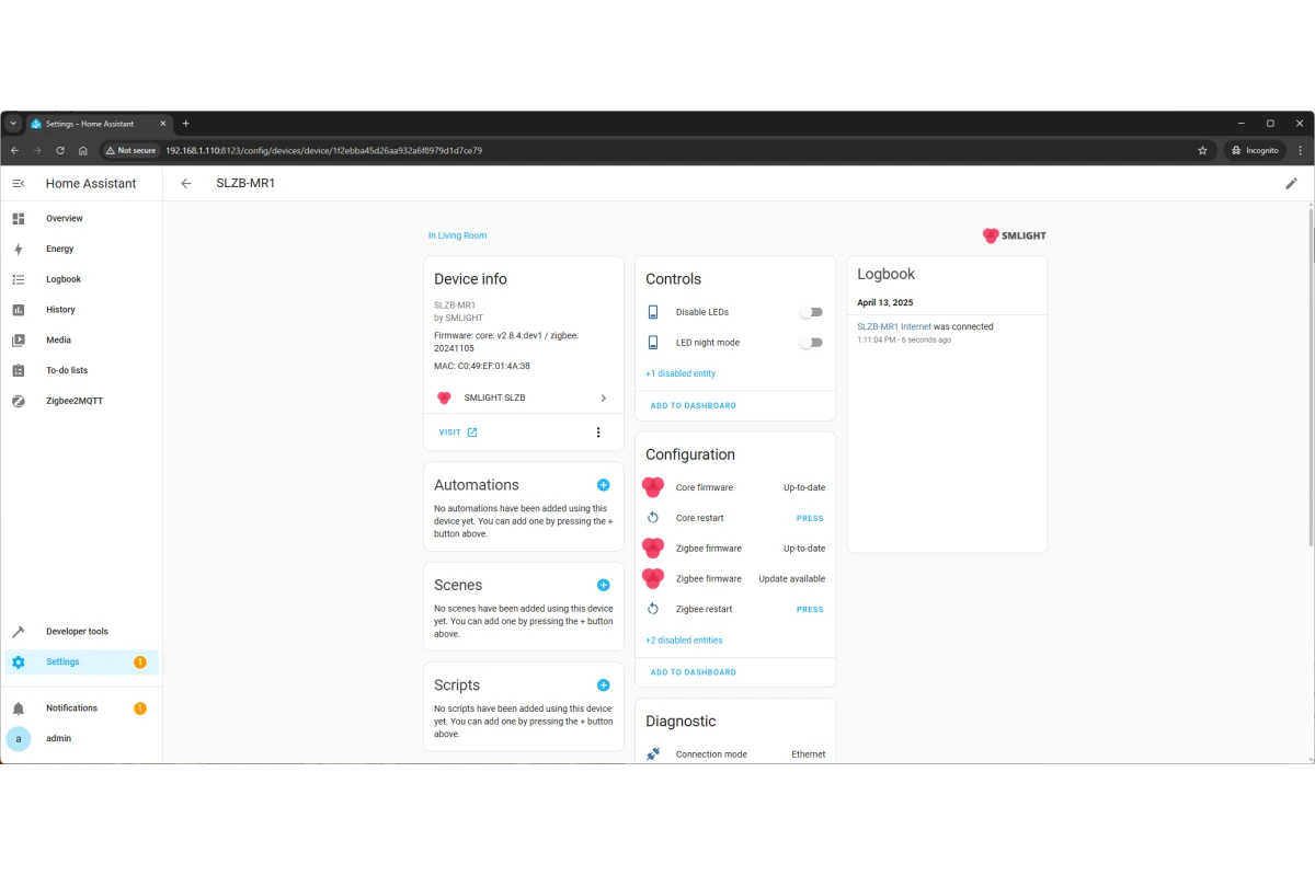 - SLZB-OS Compatibility: Version 2.8.7 and above