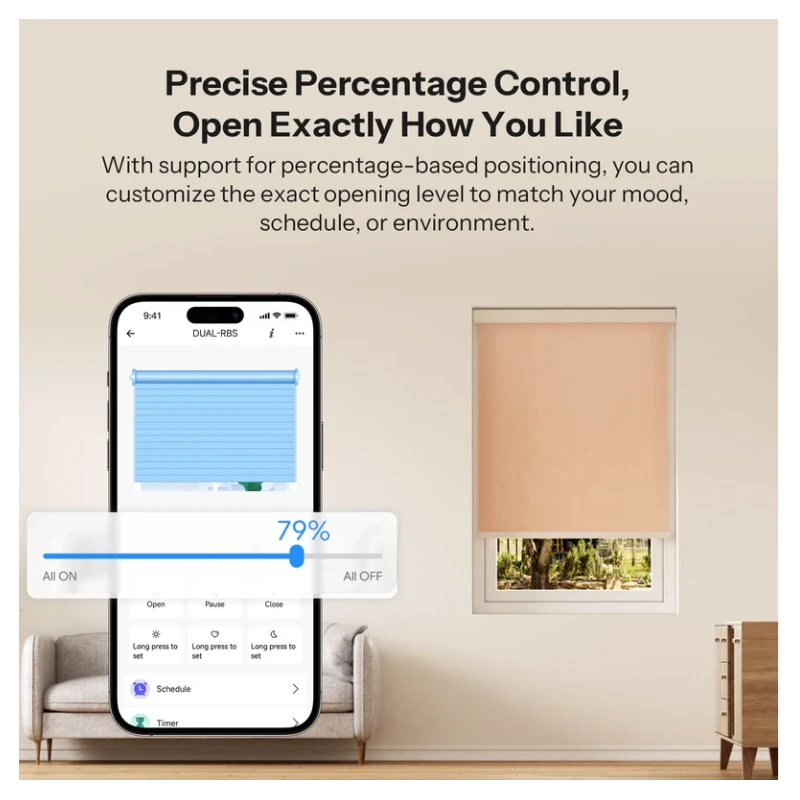 - Precise Percentage Control: Adjust your blinds' or shutters' position with high accuracy.