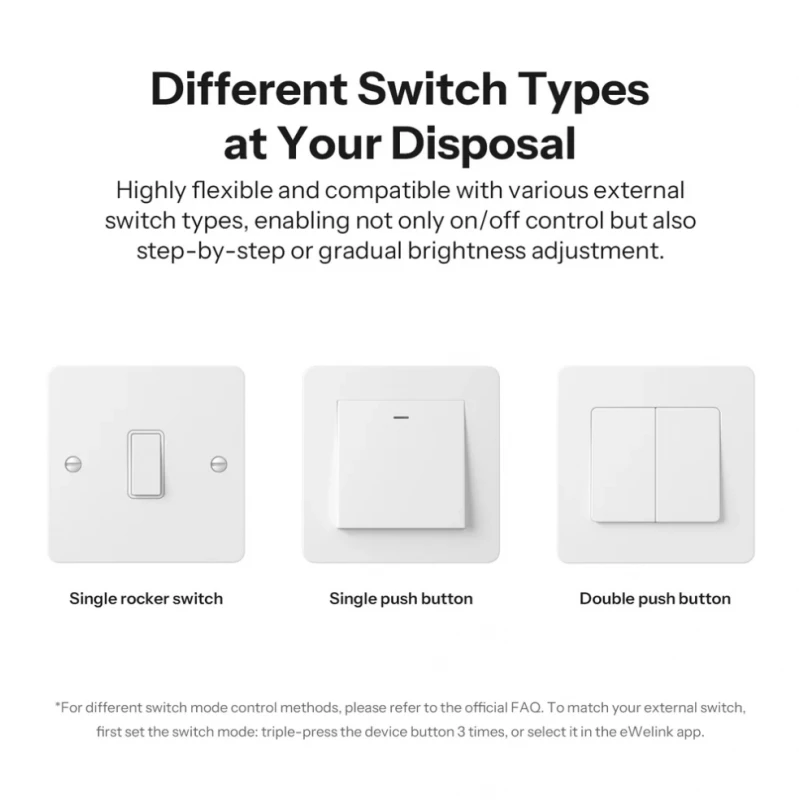 - Two-way switch support: Control from two separate wall switches