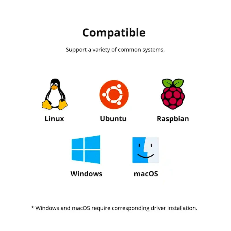 - Cross-platform support: Linux, Ubuntu, Raspbian, Windows, macOS