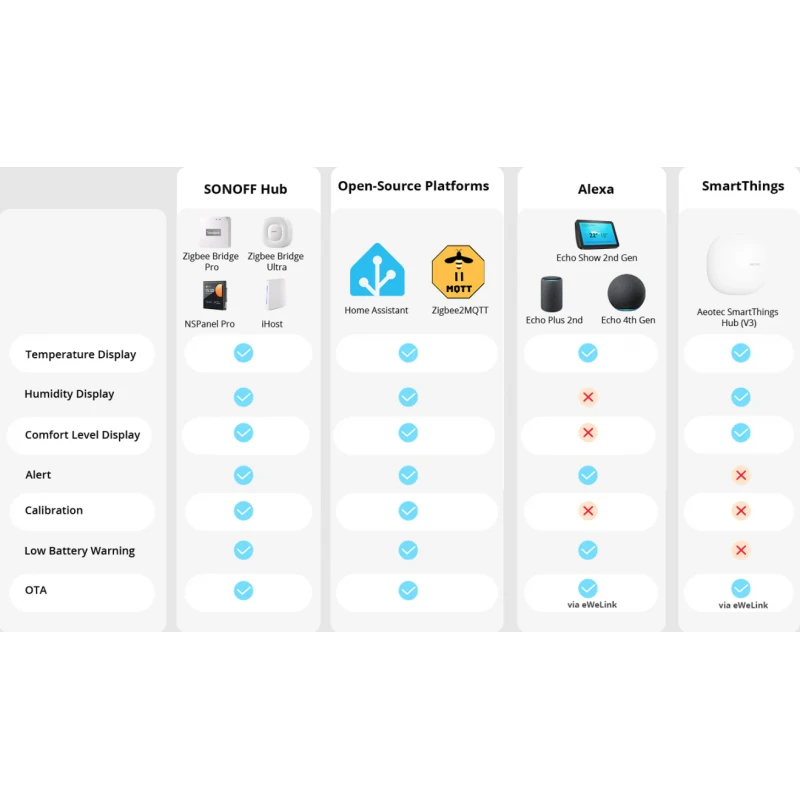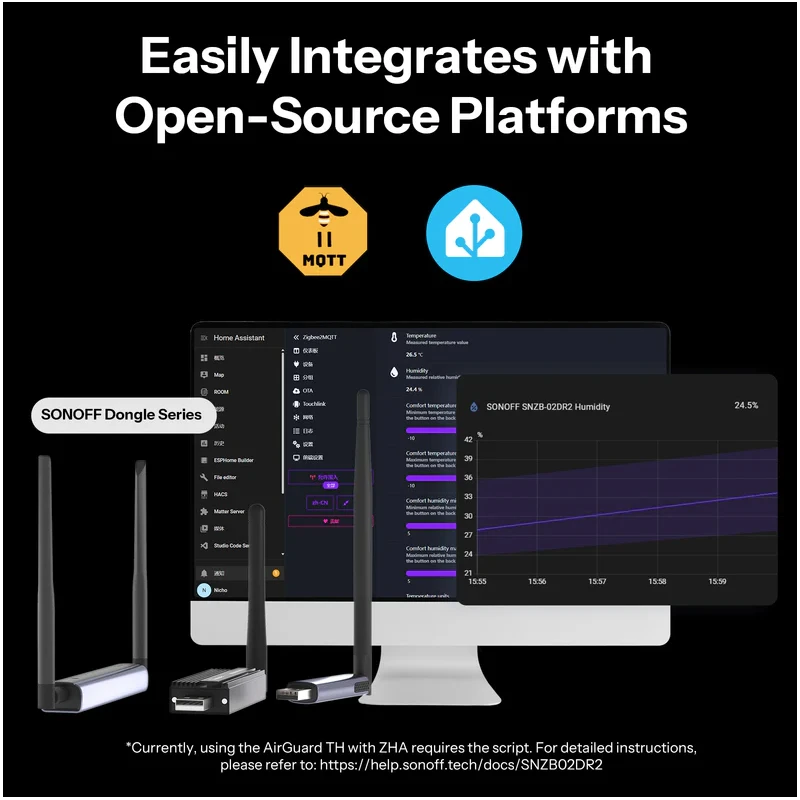 - Works with Zigbee gateways: Sonoff Bridge-P, NSPanel Pro, iHost