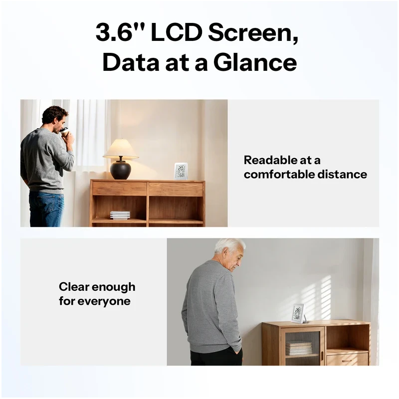 - Real-time display: Temperature, humidity, and daily min/max on a clear 3.6" LCD