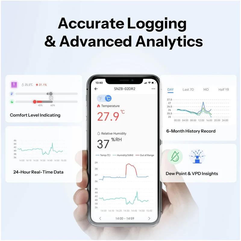 The SNZB-02DR2 sensor is ideal for smart home users seeking accurate indoor climate control with automation, analytics, and seamless Zigbee integration.